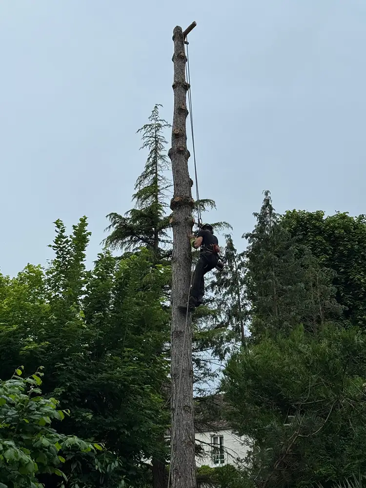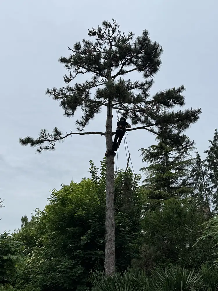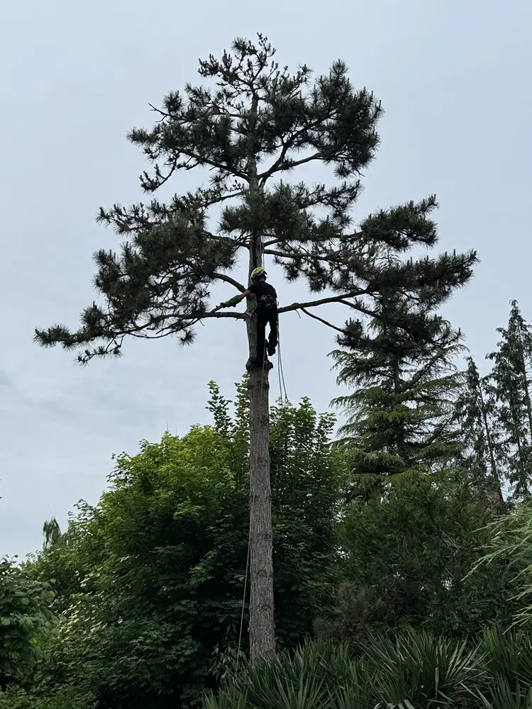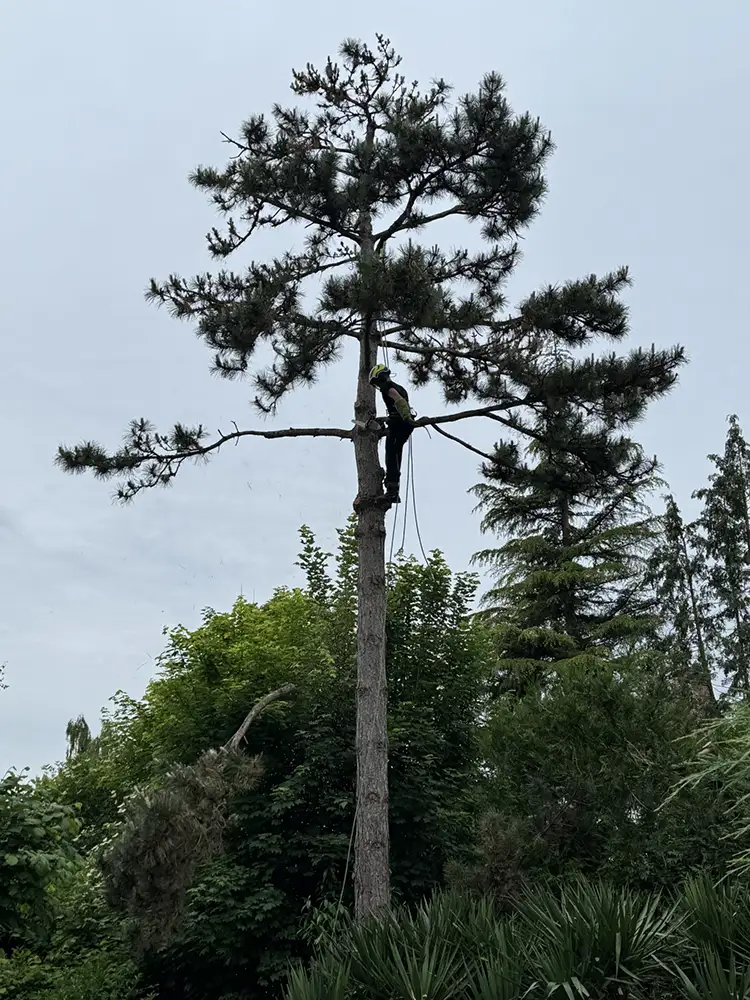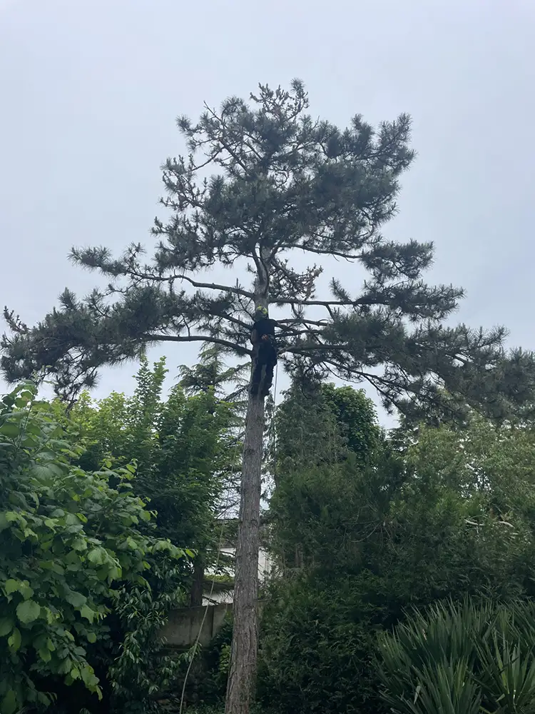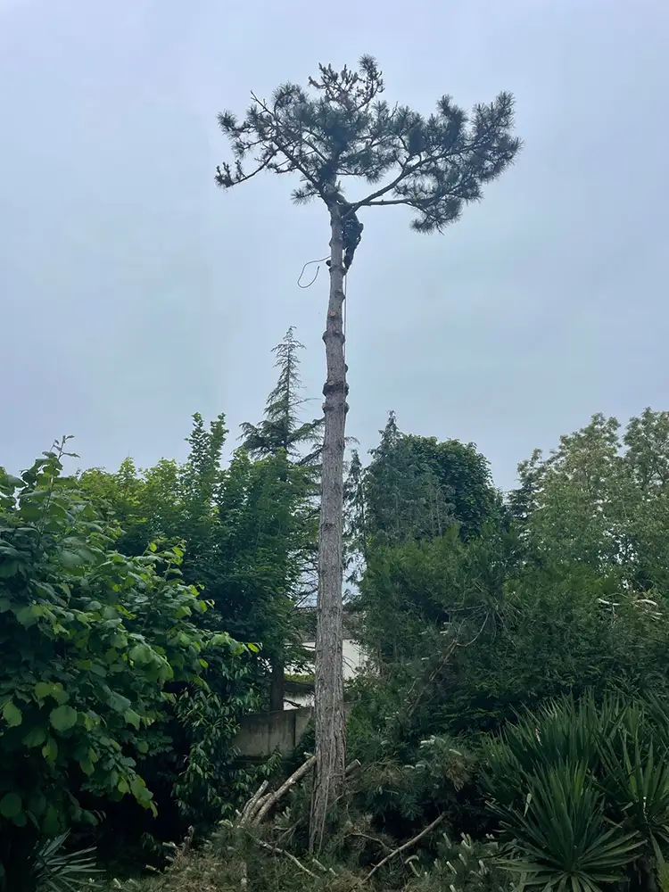 - Un pin maritime de grande hauteur nécessitant un démontage progressif.